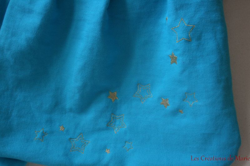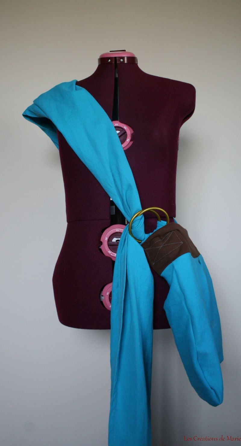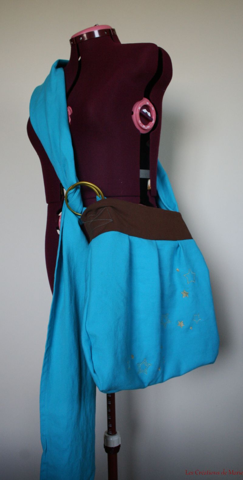 6 thoughts on “Sac de portage à anneaux – Turquoise et chocolat à étoiles