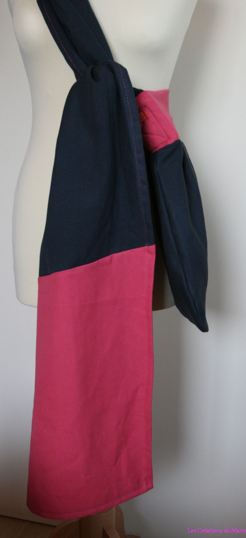 – la lanière fait 1m60 * 30 (voir 35 si tu as assez de tissus > 1/2 écharpe quoi) cm.